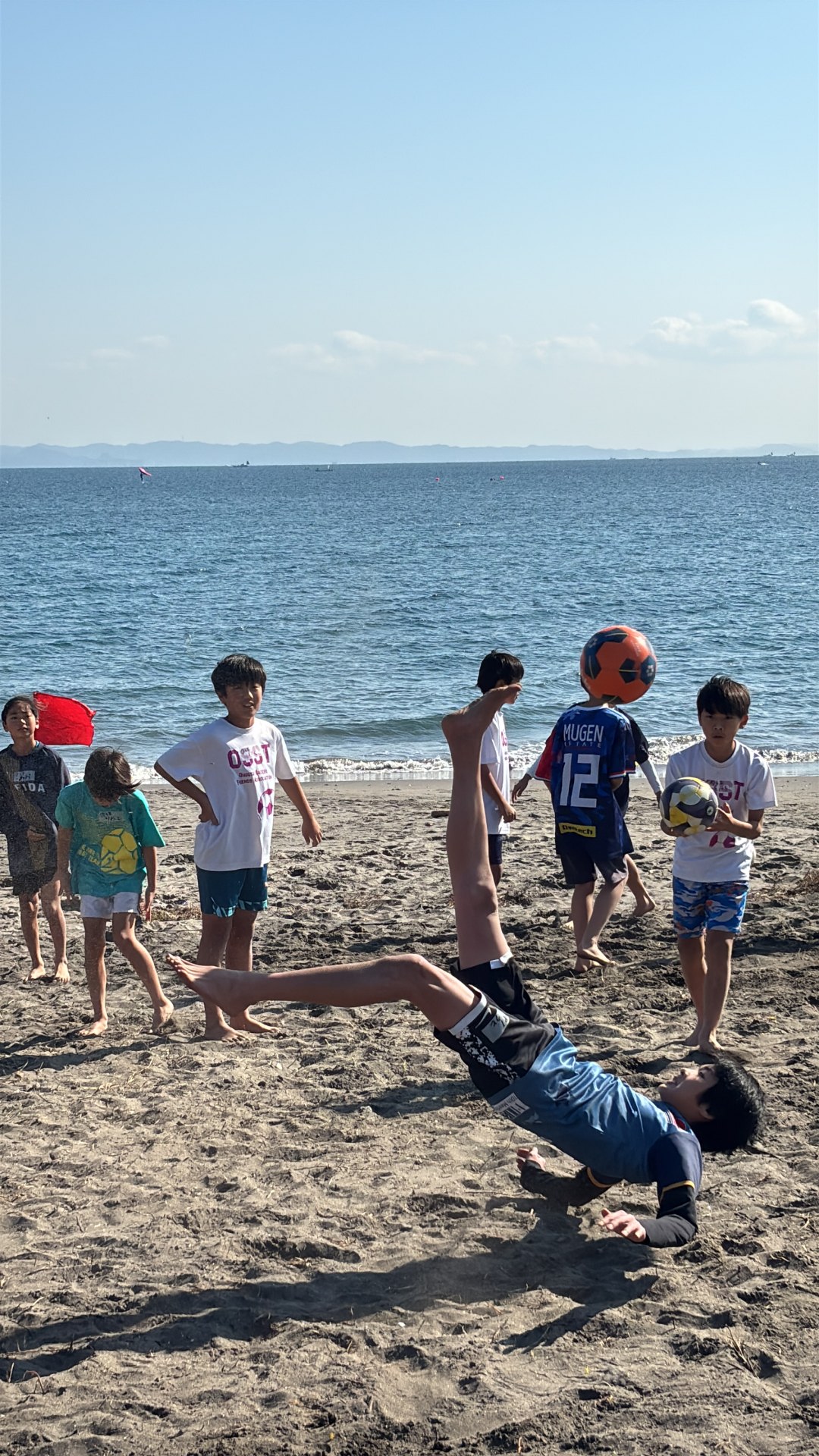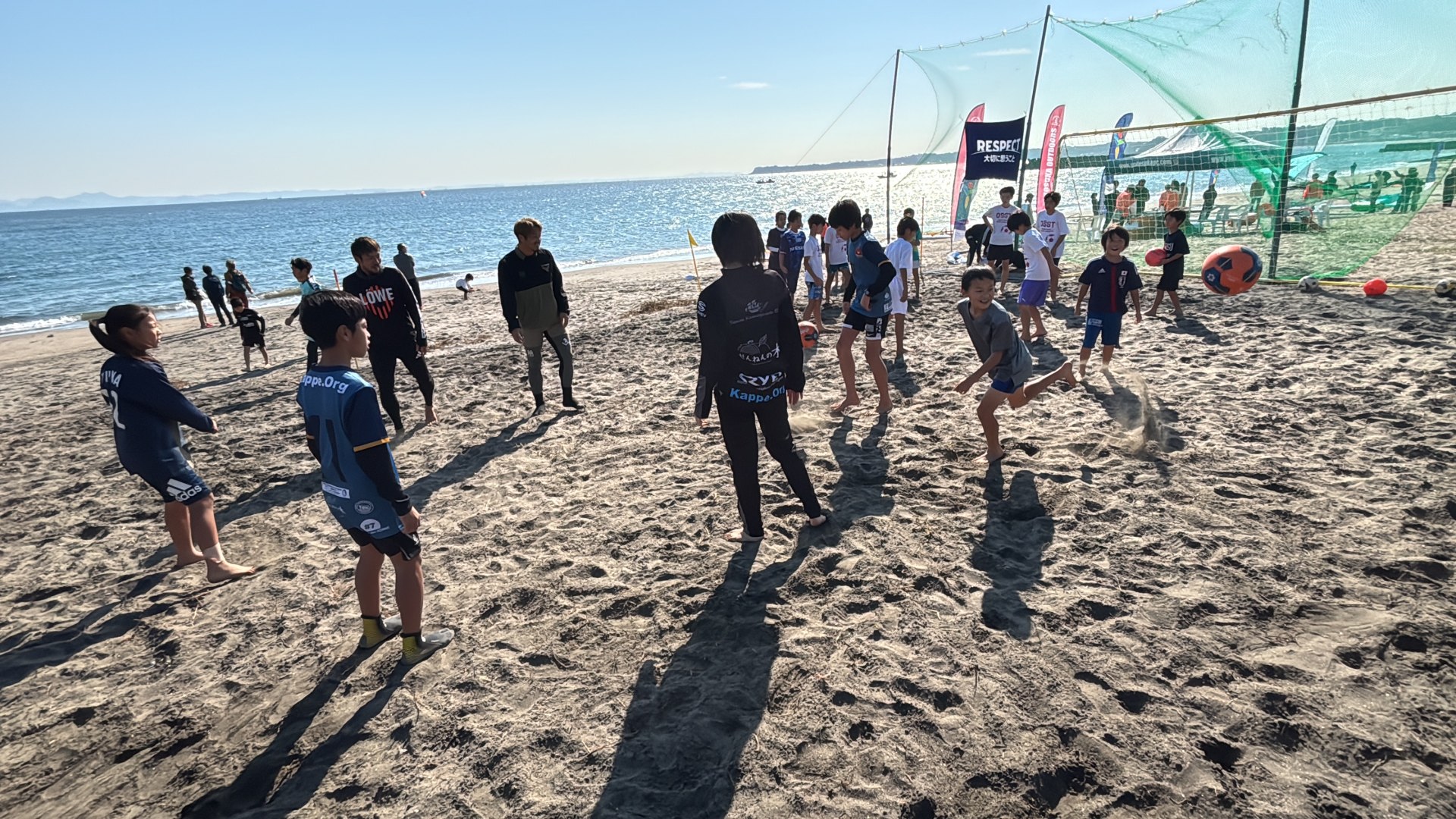 ランチを挟んで、午後は2時間ほどのミニゲーム大会。 金子&成田というレジェンド・レフェリーコンビで、楽しく試合が進められた。 ゾンネの子たちは日頃のビーチサッカースクールや練習会が生きていて、明らかに砂慣れしたし、中学生に至ってはオーバーヘッドやボレーシュートなど、レベルが正直違った。 これも積み重ねの賜物だろう。
