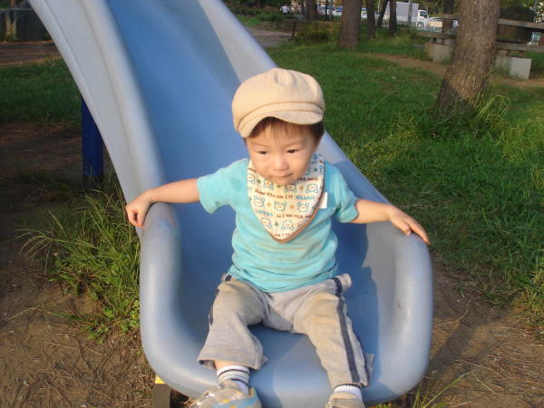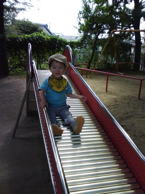 ハジメと同じくらいの子と仲良し?になって、一緒の方向を指差したり、すべり台を譲り合ったり...