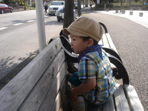 しきりに、バスを指差して「ばぁ!ばぁ」と言っていました。