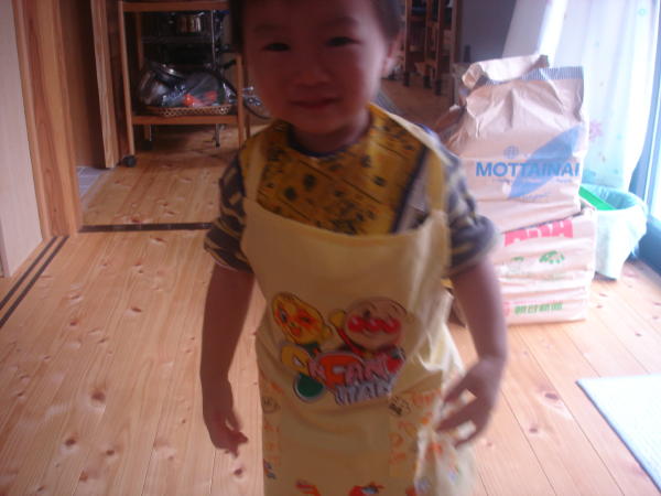 前日に買ってもらった「アンパンマンエプロン」