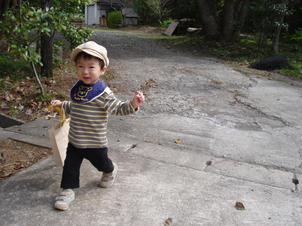 [写真:ハジメもお散歩がてらお手伝い♪]
