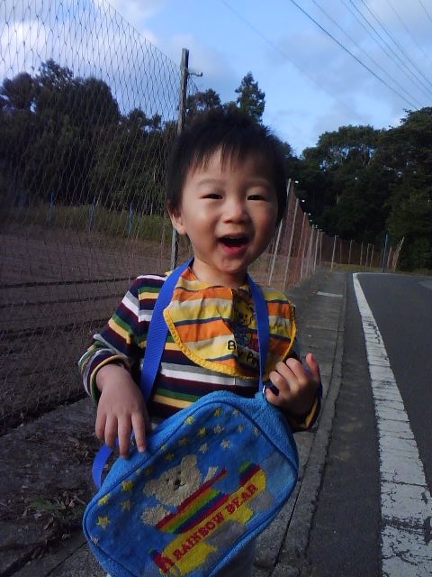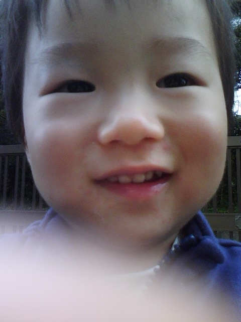 やまパパが、私の携帯に新幹線の写真を送ってくれてその写真を見せた後の喜びの表情です。