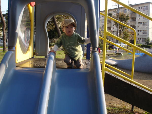 上手にすべりまくって、アスレチックの筒型すべり台も何のその。すごいです。