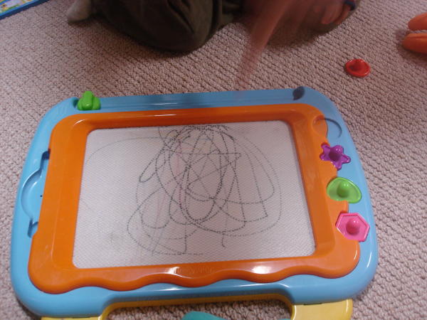 そして、なんと電車の絵を描き始めました。今まではときどーーーきお絵かきボードに向かうのですが「絵を描く」という感じではなくただスタンプ押したりして「遊ぶ」という感じだったのに、今回は明らかに「絵を描く」モードです。