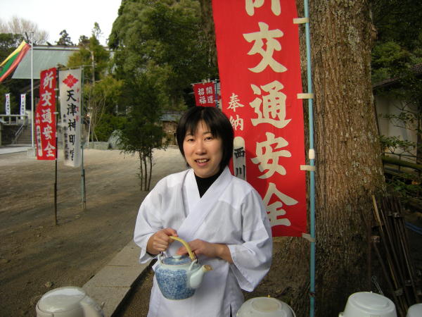 時間があると、皆さんに集まってもらい宮司がお話をしてお茶をお出しします。