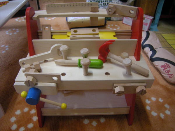 木製のおもちゃがいいということで、キッチンと迷ったのだけど男の子だしねっていうことで、大工さんセットに決定☆