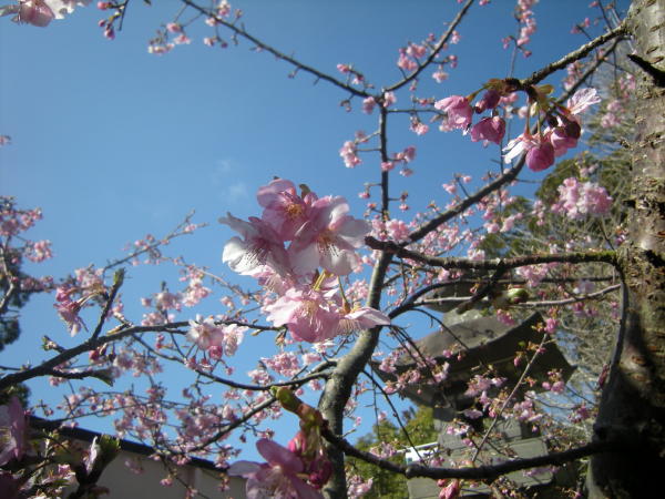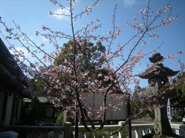 神社の河津桜もほぼ満開です。