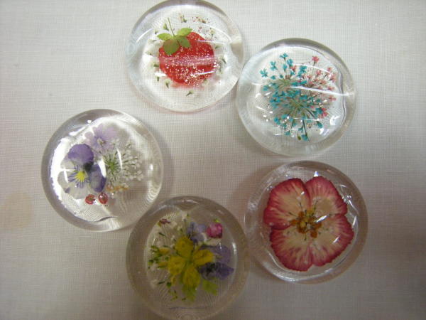 結構上手にできたのですが、いちごは失敗。薄く切って押してみたのですが、先生に聞いたところあまり熟していないいちごを半分に切って、中の白い部分をえぐって取り押すとうまくいくそうです。