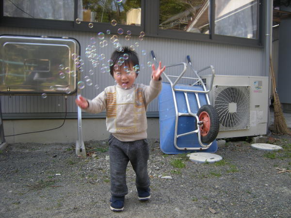 シャボン玉で遊んでみました。