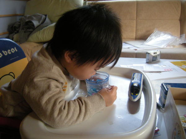 でも、何かイスに座ってやってるなぁと思ってのぞきにいったら、コップに顔をうずめてひたすら何かを!?
