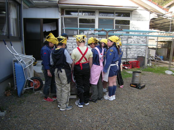 カブスカウトのキャンプで、庭で燻製を作るのに、ハジメも参加(うろちょろ)してみました。