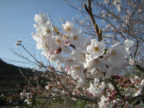 いちの鳥居に橋があって、そこにも川にかかるようにきれいなそめいよしのがありますが、そちらは8分咲きくらい。