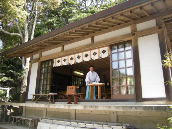 頂上まで登りお参りして戻ってきてお祓いを受け、御札とお赤飯を頂きます。