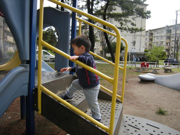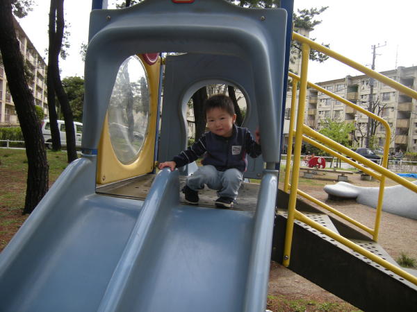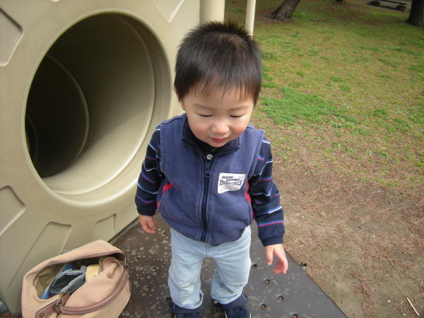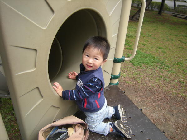 前は、すべれたけど自分では筒の中に入れなくあぶなっかしかったので補助していたのですが、自分ですたすたあがって上手に筒に入り何度も何度もすべっていました☆