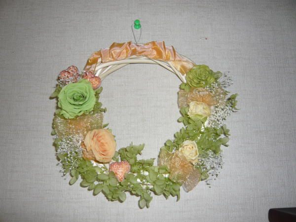 プリザーブドフラワーのリースは、なかなかかわいかったみたいです。