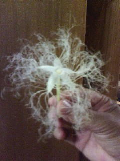 夕方、薄暗くなってから数十分しか咲かない(本当にきれいに咲くのはほんの数分みたい)、花びらにレースみたいなのがふわふわついている白い花です。