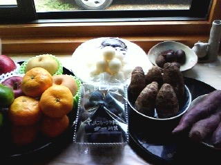 我が家は、もちろんおだんご、それにりんご・なしやぶどうにみかん、