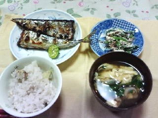 夕食は、栗ご飯に秋刀魚。