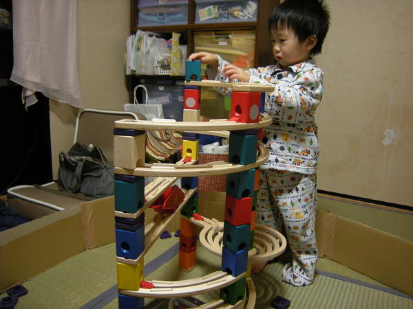 3日目くらいに、もっと小さいアンパンマンか何かの組み立てないで使えるボールを転がすのにすればよかったと後悔したのですが、やっぱりクアドリアにしてよかったです。飽きたとしてもまたしばらくすれば遊べそうだし、一生ものかなぁと思います。