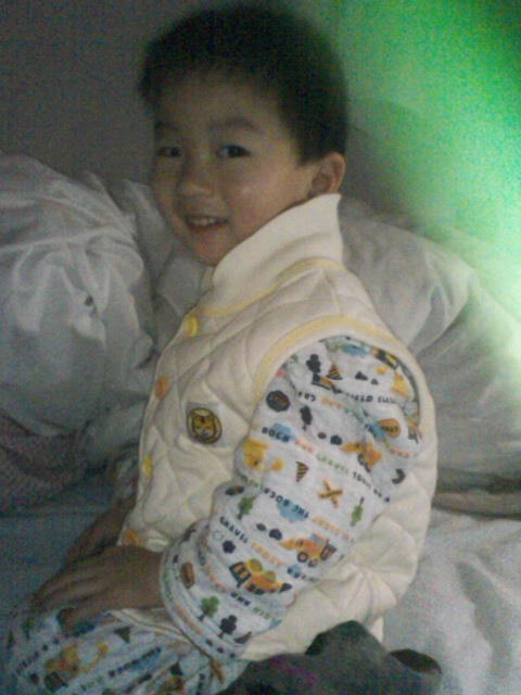 朝起きて、しまじろうのあったかベストのボタンを全部ひとりではめました☆