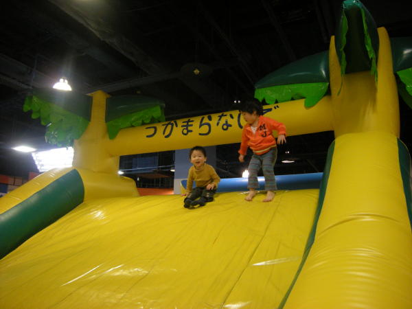 いっぱい遊具があって、どれもビニールで空気が入ったものなので安全。そして室内に砂場もあるし、食事するところもあるし、ゴーカートも出来るし、着替えて撮影まで出来るし、もう最高♪