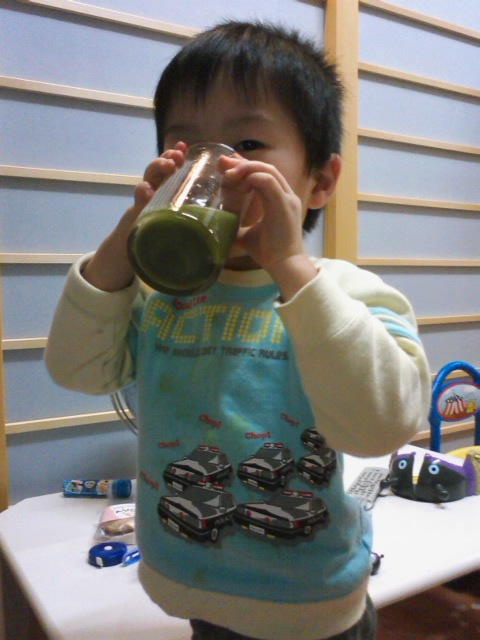 「あおやさいジュースのみたい、こうやってつくるんだよー」