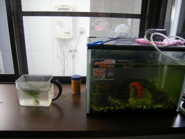 私にはとてもとてもピンセットで取るなんてできないと思い、欲しいと言ってくれたので、たまごを持っているめだかちゃんたちをお嫁に?だした。