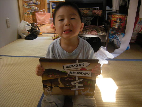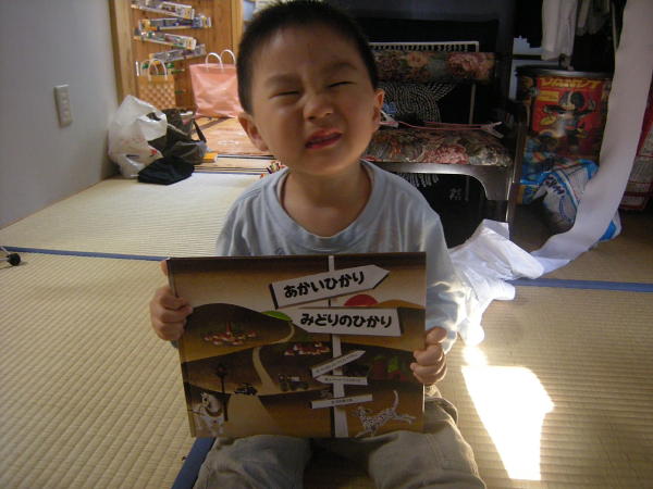 「大好きな絵本と♪」という題名にしたいのですが、変顔ばかりで....
