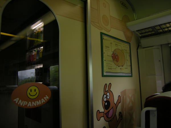 アンパンマンシートはとってもかわいかった。天井も壁もシートもカーテンも全てアンパンマン仕様。
