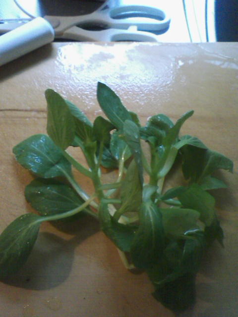 我が家のキッチン栽培「ミニチンゲンサイ」がそろそろ良さそうだよ〜と呼びかけている気がしたので、今朝収穫♪