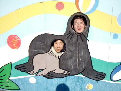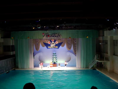 そこで、30分くらいのいるかとアシカのショーを見たけど、これがなかなかおもしろかった。一応ストーリーがあって、海賊が出てくるのだけど、海賊が「ツーピース」ってのにはこけました(^ ^;)