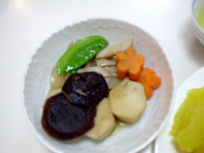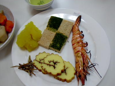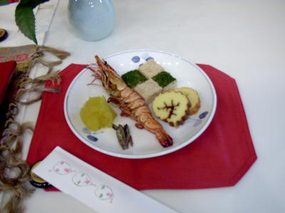 煮しめもとってもよい味付け。梅花にんじんの切り方に感動〜。薄味だけど、でもしっかりした味付けになるので、体によさそうです。一つ一つの野菜の切り方、縁起物って感じで意味があり、そういうのを考えるのが楽しい。