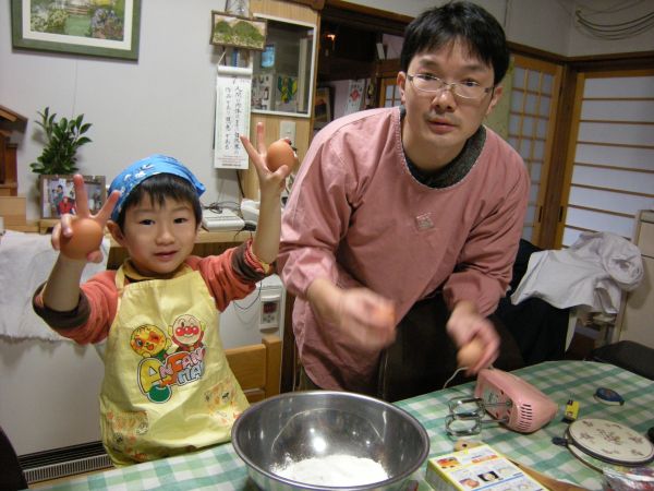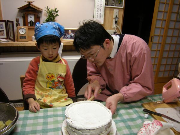 今日は、やまパパが張り切ってハジメと一緒にバースデーケーキを作りました。