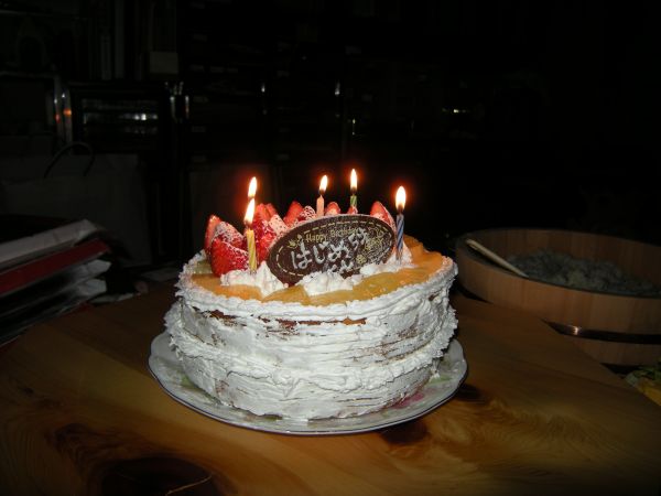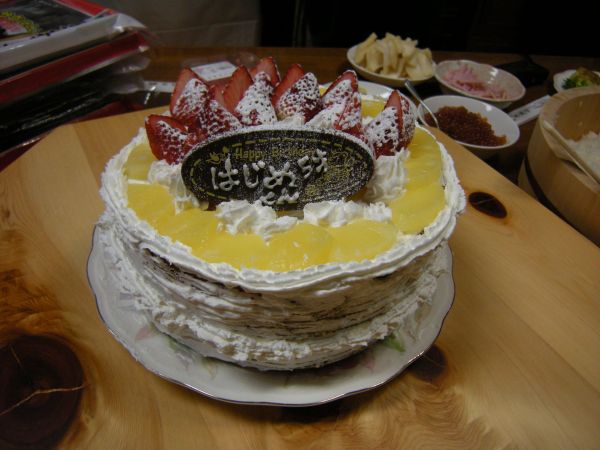 ハジメがいちごが食べられないので半分パイナップルのケーキです。