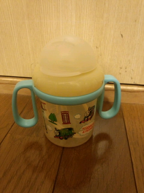 ミッキーは新しい形のトーマスストローマグを使っています。