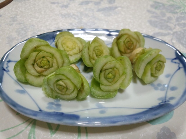 こまつなの元を切ると、バラのように見えて素敵です☆