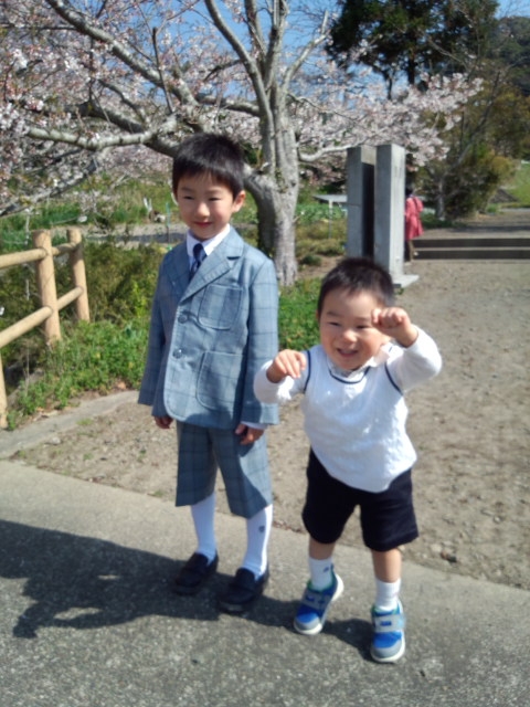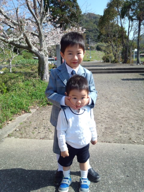 ハジメが着ているスーツは、私の祖母が私の兄の小学校入学のために作ったスーツです。