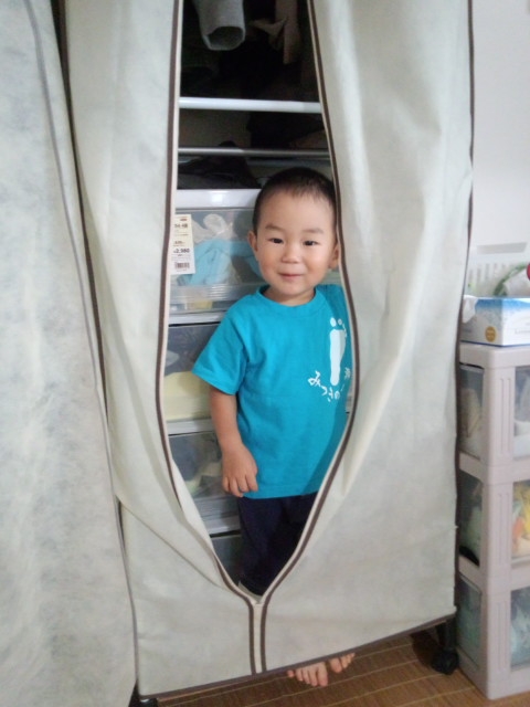ミッキーがいつのまにかいなくなっていて、やけに静かだなぁと思ったら、隠れてました....簡易タンスの中。