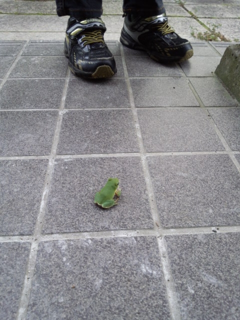 [写真:カエルちゃんとハジメの足]