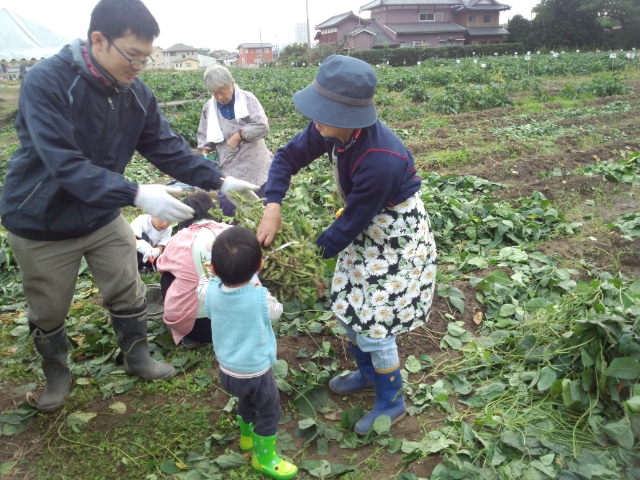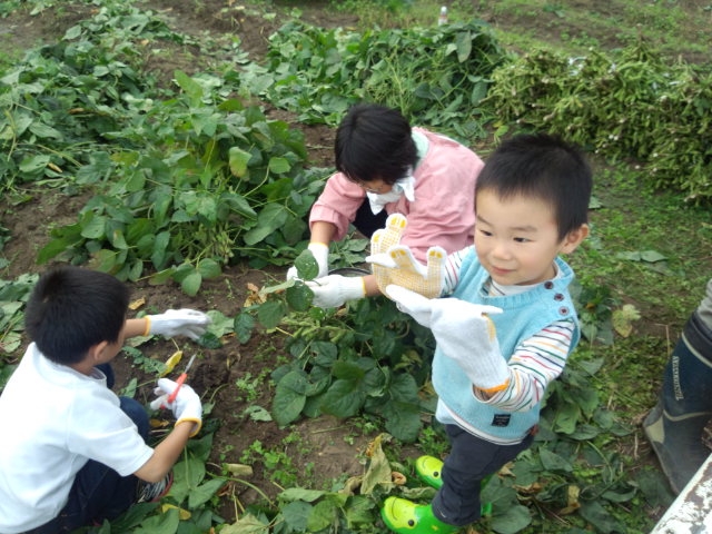 今日、鴨川七里(枝豆)の収穫に行ってきました。と、言っても、私は下校時間に合わせてハジメをひろい、後から見学に行っただけですが....