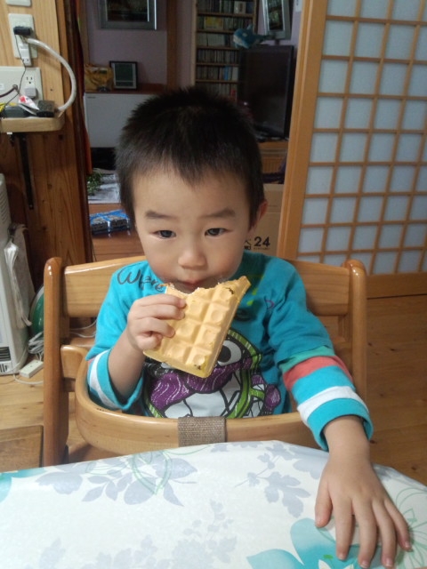割ってあげようとしたら、ひとつ全部食べたかったらしく、それも泣いてわめいて暴れてました....
