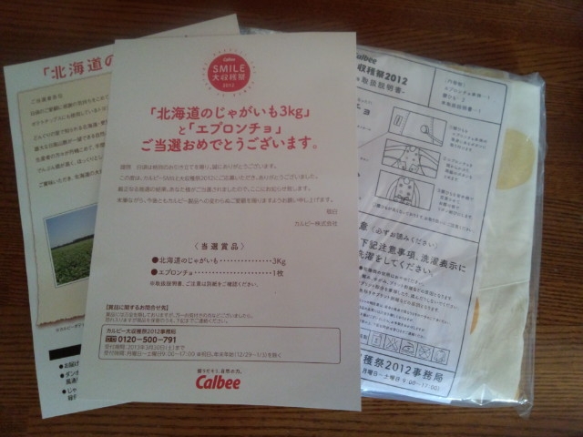 ※「エプロンチョ当選」で調べたら、当たった人のブログが結構出てきた〜。