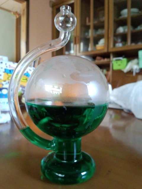 気圧があがると管の水がさがって、気圧が下がるとあがります。
