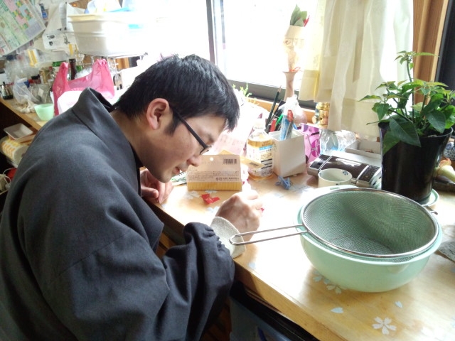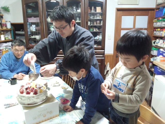 毎年恒例になりつつあるケーキ作りにがんばるやまパパ。