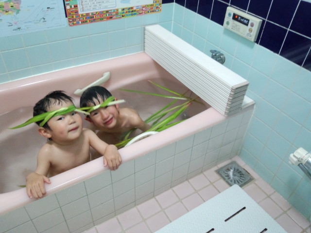 菖蒲の湯に入って、頭に菖蒲をまきました。