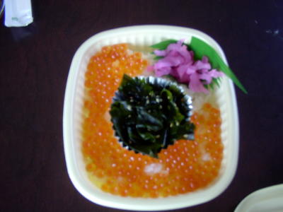 いくらいくら、いくら弁当です。これはすごい。でも、シャケ弁当とシャケっ子弁当(いくらとシャケ)の差は、20円。半分が、シャケで半分がいくらになって。