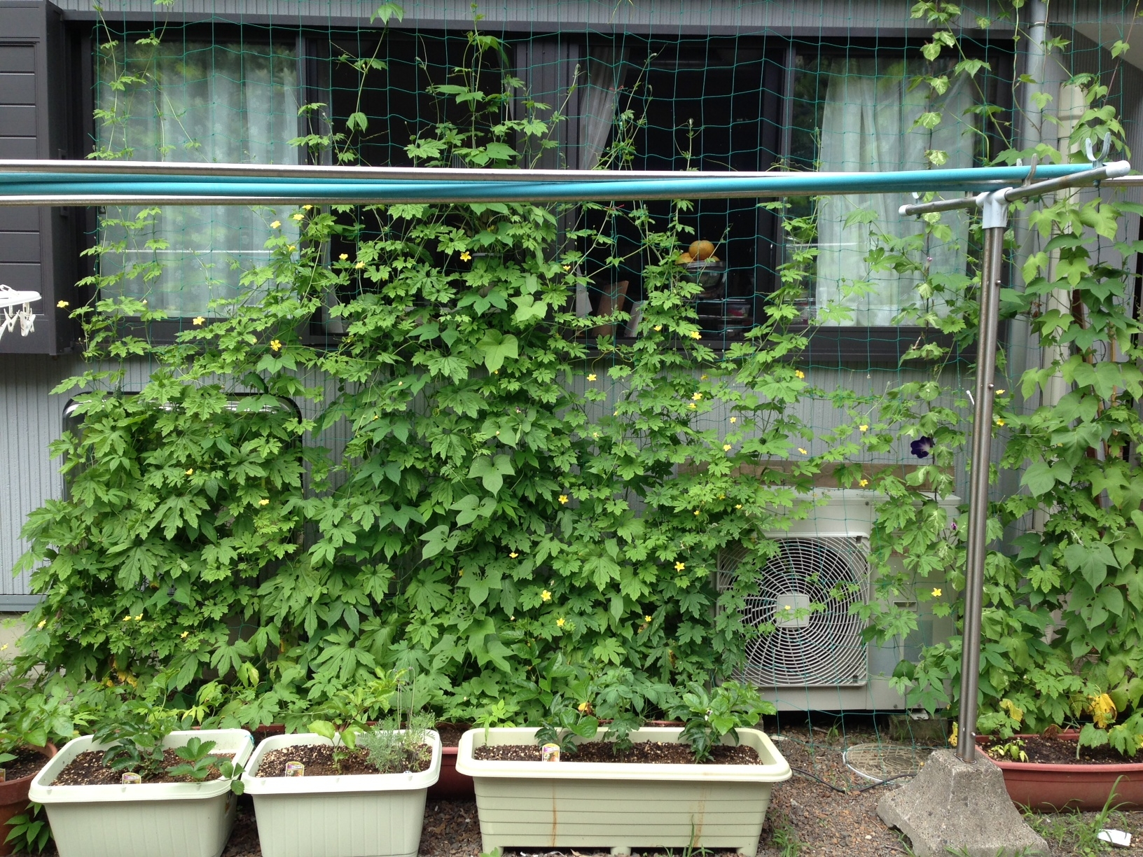 ゴーヤに、パッションフルーツ(あまり伸びない)