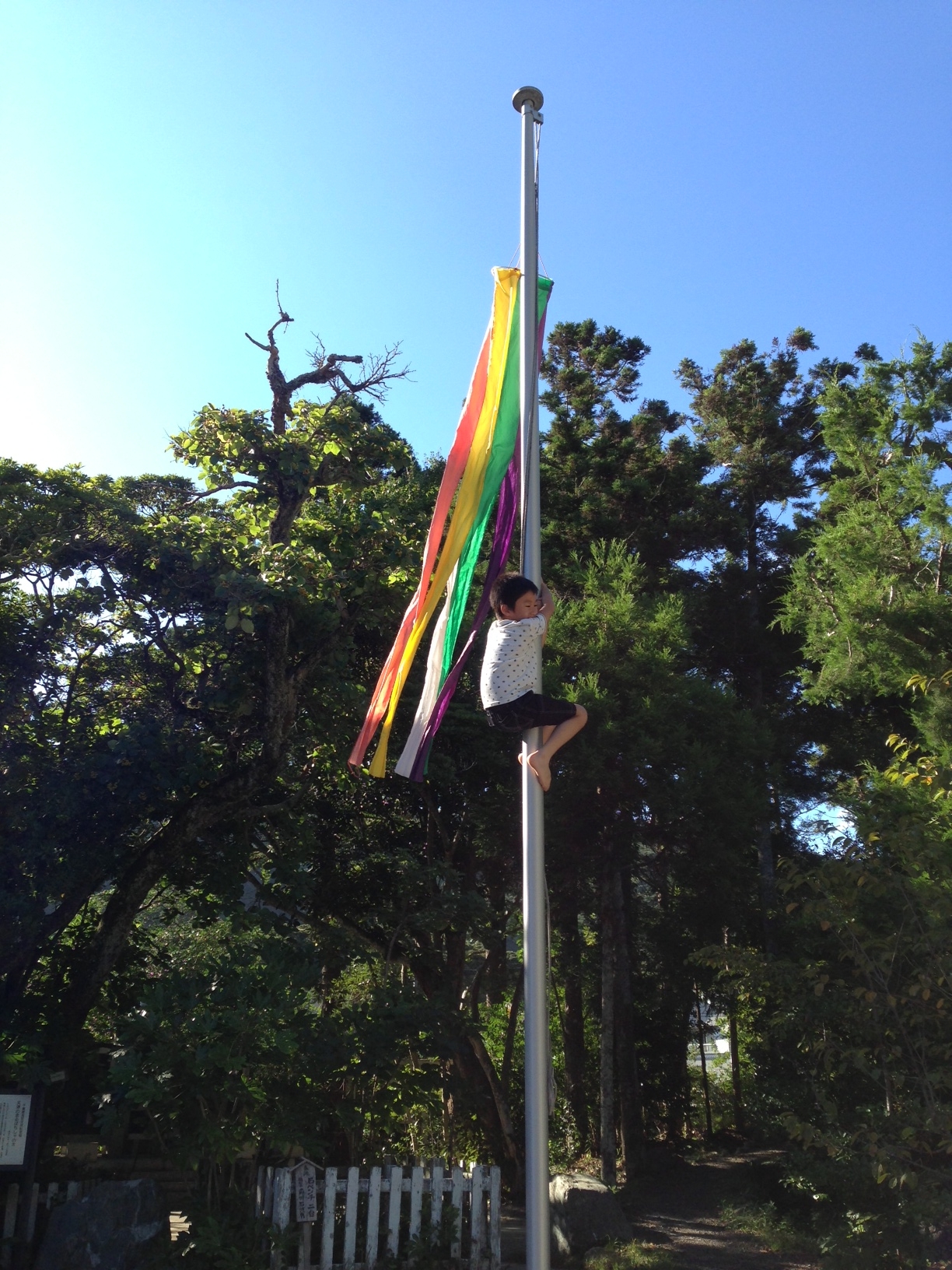 って言っても吹流しのあるポールなんだけど、登るたびに揺れていて見てるほうが怖いけど、