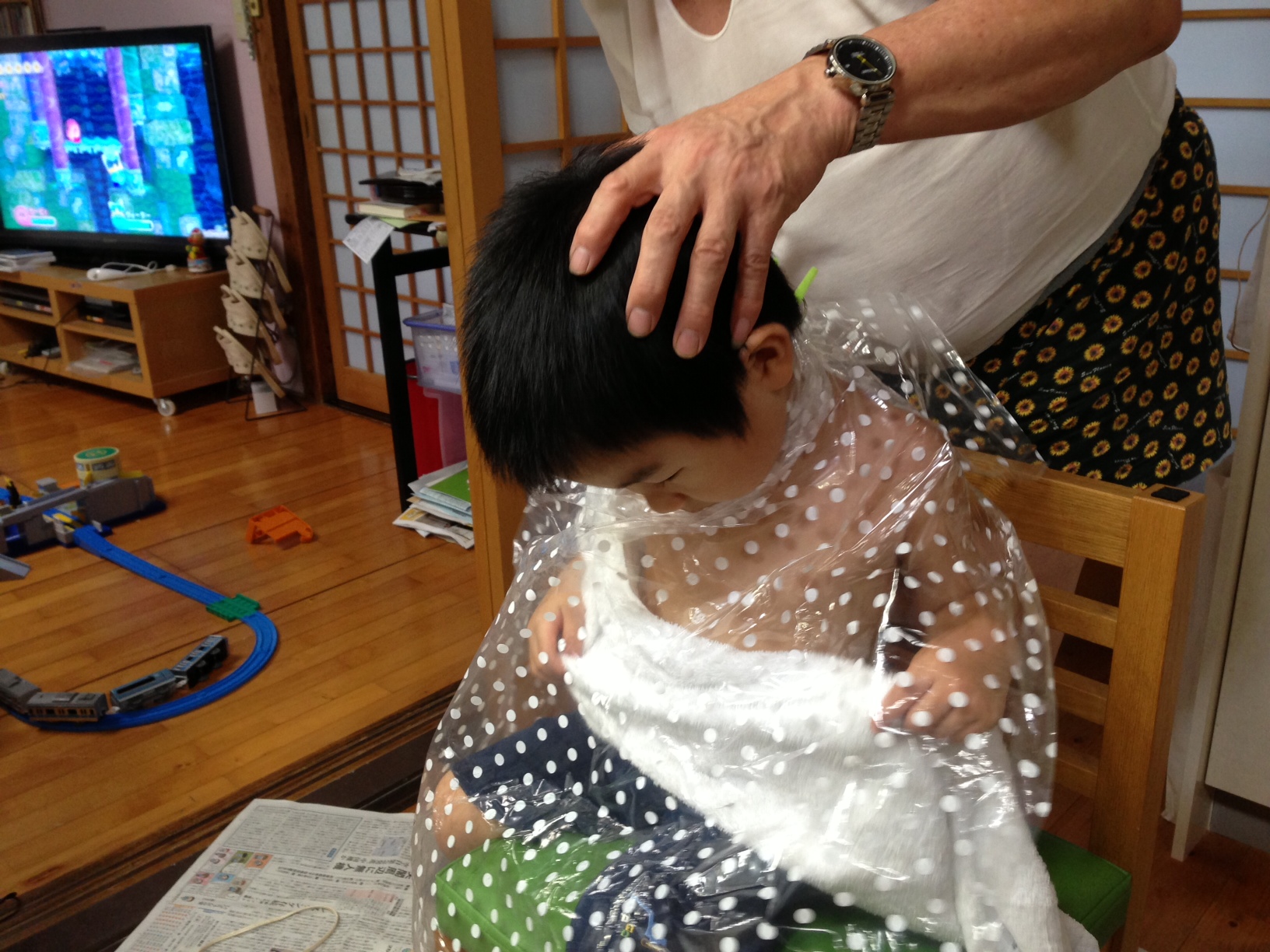 今日は、子どもらの断髪式でした。