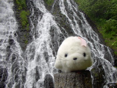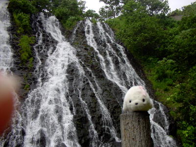 オシンコシンの滝を見学。これまた雄大な滝!観光客もいっぱいいて、ちびらっこの写真を撮るタイミングが難しかった。